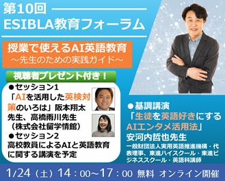 また、1月24日(土)には「授業で使えるAI英語教育〜先生のための実践ガイド〜」も開催されます。基調講演には、CMでおなじみの東進ハイスクール英語科講師・安河内哲也先生がご登壇されます。