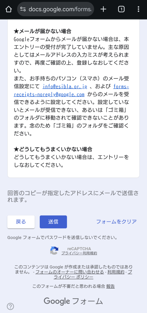2.すべての項目への記入が終わったら「送信」のボタンを押してください。